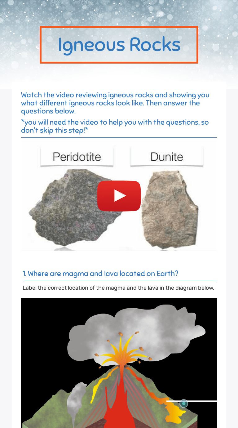 Igneous Rocks Worksheet from s3.studylib.net Find out more on food network. We don't buy into the fear of municipal bonds and neither should you. Natural stone is one of the most versatile elemen. Pegmatite is an intrusive igneous rock made up of large interlocking crystals. Learn more about major types of sedimentary rocks including arkose, alabaster, rock gypsum, sandstone, rock salt, and coal. John green quickly assesses the location, identifies the problems and finds the solution for a bar on on the rocks. In this helpful primer on landscaping with rocks the experts at hgtv.com share six easy ways to spruce up your landscape with rocks and stones to create both naturalistic and formal effects. Discover fascinating facts about this potentially valuable rock.